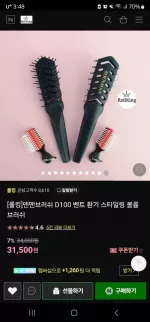 [롤킹]덴맨브러쉬 D100 벤트 환기 스타일링 볼륨 브러쉬 미용실, 바버샵에서 많이들 사용하는 브러쉬입니다 택배비포함 34500원에 샀습니다 막상 구매했지만 저하곤 안맞아서 싸게팔아요 제품은 박스만뜯은 사용하지않은 새상품에 가깝습니다 구매사이트 입니다 https://m.smartstore.naver.com/roll_king/products/4911083371?NaPm=ct%3Dls9zzfph%7Cci%3Dcheckout%7Ctr%3Dppc%7Ctrx%3Dnull%7Chk%3Dd6a46fef16e313cd9aa87db6bf282641a5aecc5e 추가로 사진 필요하시다면 따로 찍어서 보내 드리겠습니다 교환 ,환불 어렵다는점 말씀드립니다