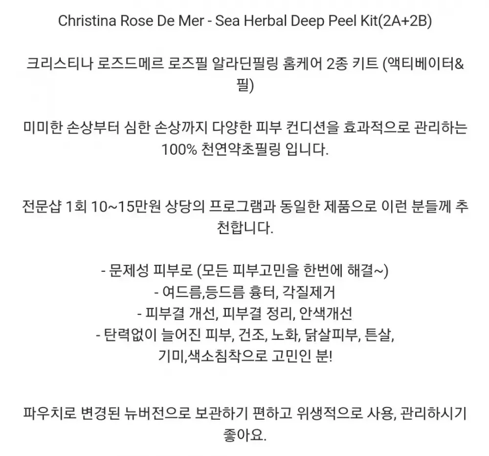 피부과 로즈필 뉴알라딘 필링 100% 천연약초필링 2세트_크리스티나 로즈드메르 홈케어 2종 정품 Christina Rose De Mer / made in Israel _ 새상품 / 안전결제 바로 하시면 됩니다. ✋️필 2개 +액티베이터 12ml*2개 - 필 1개로 얼굴은 3-4회 , 등 1-2회,가슴 2회 시술 가능합니다. ?필 1개 4.5g으로 필:액티베이터 비율은 1:1.5 혹은 1:2로 사용