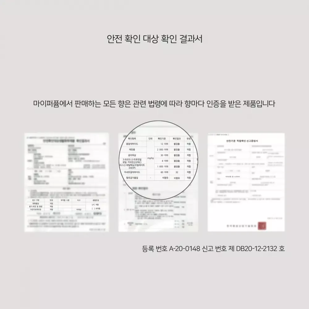 ✔ 찜팔이벤트 - 찜팔 스샷 첨부시 샘플증정 [가격안내] 30ml 12000원 (기본 플라스틱, 유리용기변경시 +1000원) 50ml 17000원 (기본 플라스틱, 유리용기변경시 +1000원) 100ml 28000원 (기본 알루미늄, 유리용기변경시 +1000원) 충전식휴대용공병 5ml +4000원 +택배 3000원 / 제주 및 도서산간지역 +6000원 (CJ대한통운) ❤30,000원 이상 미니어처증정 ❤55,000원 이상 미니어처증정 + 무료배송 (유리변경금액 및 각종 추가금액, 공병 금액 합산 제외) 일부향 추가금 있습니다! 문의 주세요! ❤번개페이는 따로 무슨향 몇미리신지 알려주시면 배송비포함 결제창 올려드립니다❤ ❤아래 '펼쳐보기' 눌러주세요❤ ★판매 목록 (자세한 목록 상점 목록 확인)★ ㄱ-ㄹ https://stuv4.app.link/mMnxczI3Zbb ㅁ-ㅅ https://stuv4.app.link/2i451YL3Zbb ㅇ-ㅈ https://stuv4.app.link/UsgwT8M3Zbb ㅊ-ㅎ https://stuv4.app.link/9nDFwPO3Zbb ★구매 전 필독★ ✔압도적 판매 1위/ 재구매 1위/ 오랜시간 지켜온 자리는 이유가 있습니다. 명품향수type 향스프레이를 최저마진, 최상의 퀄리티로 조향해드립니다. ✔️‘퍼퓸’농도로 제작이 되어 지속력이 우수합니다. 개인차가 있지만 의류에 분사하면 반나절 혹은 그 이상갑니다. ✔마이퍼퓸 향스프레이는 이미 생산된 제품을 판매하는 것이 아닌 주문하신 날 제작되어 보통 다음날 출고됩니다. 주문 제작상품이기에 단순변심에 의한 교환환불은 불가합니다. ✔받으신 제품은 즉시 사용도 가능하지만 처음에는 알코올 향이 느껴질수있습니다. 알코올 향이 나더라도 뿌리고 5-10초 정도면 알코올 향은 자연스럽게 사라지며 그늘진 상온에서 2주정도 숙성 후 사용하시면 알콜향이 사라지면서 향과 지속력이 더 좋아집니다. (숙성 시 온도가 너무 뜨겁거나 차가운 곳에는 보관하지 말아주세요! ex. 냉장냉동 보관금지) ✔마이퍼퓸의 향은 유명 브랜드의 향을 비슷하게 조향한 제품으로 브랜드향 제조사와 무관합니다. ✔마이퍼퓸의 알루미늄용기와 플라스틱용기는 유리용기에 비해 얇고 가벼워 유리병과 같은 용량을 비교했을때 작아보이지만 실제로는 정량 혹은 그 이상 담아드립니다. 유리병은 무겁고 내용물의 부피가 커보이는 성질이 있어 알루미늄과 플라스틱과 비교했을때 커보일뿐입니다. (ex. 일반요구르트가 65ml 입니다) 플라스틱과 알루미늄, 유리 용기또한 인증 받은 제품입니다. ✔마이퍼퓸의 모든 제품은 향수베이스와 코스메틱 등급의 향료로 제작되어진 멀티 향스프레이로 관련 법령에 따라 향마다 안전확인대상 인증을 받았습니다. 섬유나 패브릭류에 최적화되어있으며 개인에 따라 알레르기를 일으킬수있어 피부에 직접분사는 피해주시고 섬유와 같은 의류에 분사시 ‘퍼퓸농도’의 부향율로 더 긴 지속력이 유지될수있습니다. (유해화학성분,프탈레이트,방부제無 제가 제작한 제품 제가 직접사용중입니다!☺️ 시험성적서도 참고해주세요!☺️ ) ✔마이퍼퓸에 관한 상표는 출원진행중이며 출원진행중에도 마이퍼퓸의 상품설명의 글과 사진을 무단 사용 및 배포 시 경고 대상이 될수있습니다.