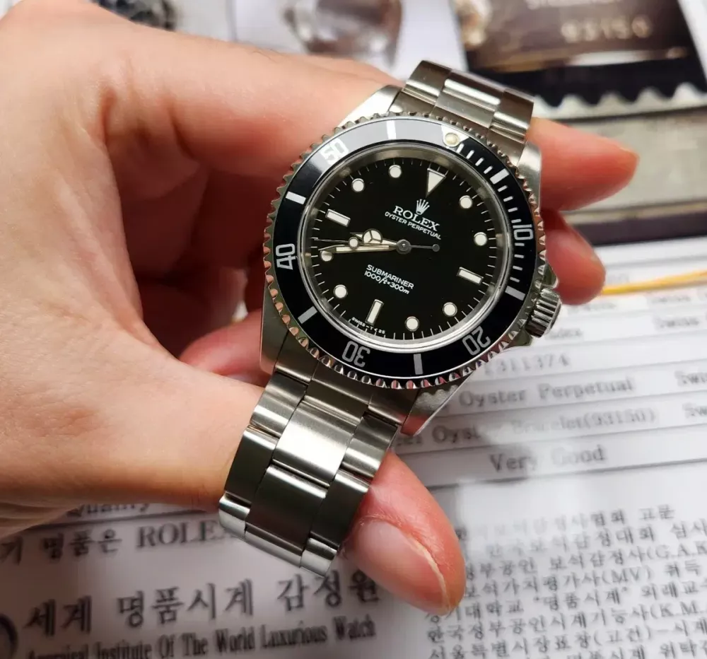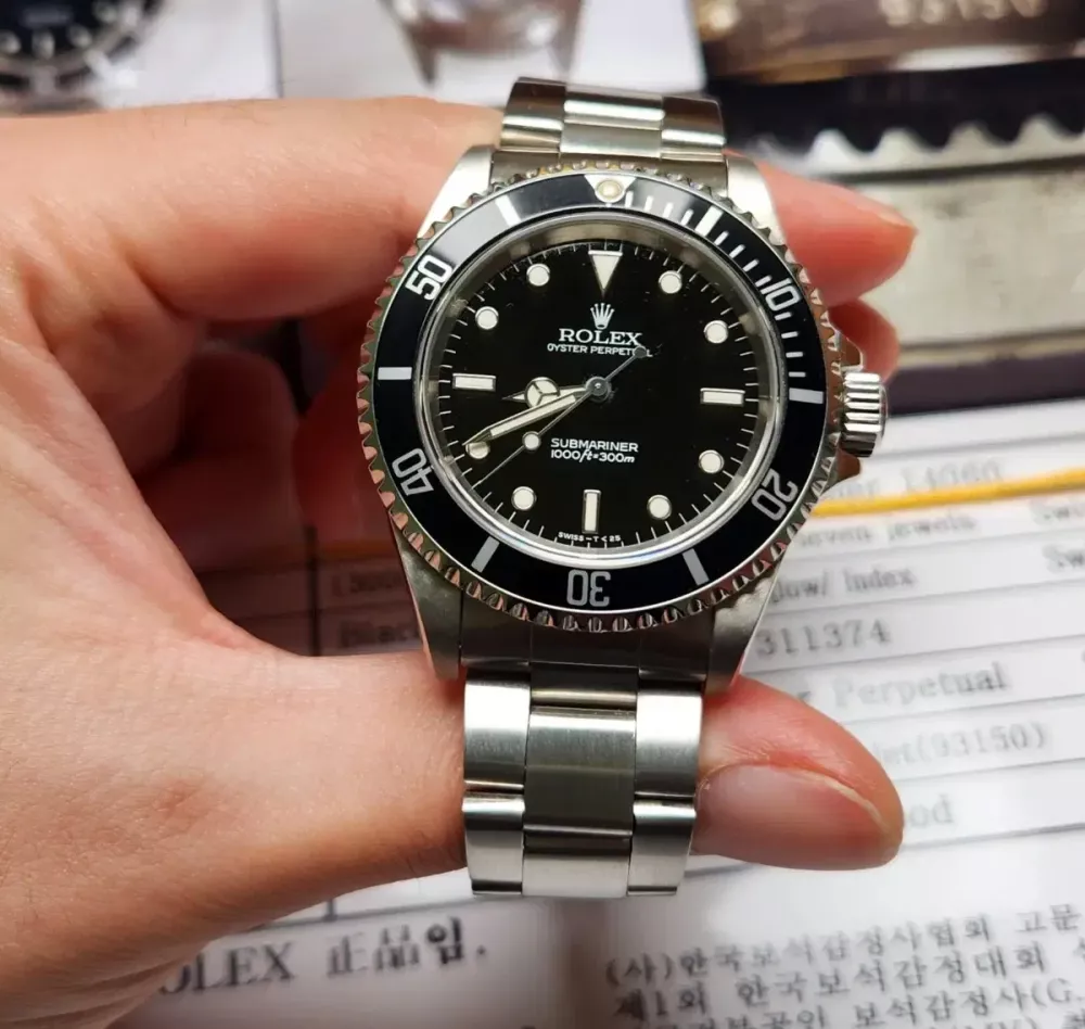 ●아래 내용 꼭 읽고 문의주세요● - '교환', '업자 문의' 사절. 상식밖 거래 및 비매너, 사적 요청, 의미없는 대화 X - 연락 후 고민이 아닌, 고민 다 끝나면 연락부탁드립니다 - 협의없는 임의 카드 결제시 취소됩니다. 아무런 대화없이 카드결제할 경우, 거래 진행 불가함을 알려드립니다 - 제 사진을 도용해 터무니없는 가격에 올려놓는 도용 사기글들에 주의하세요 - 구매 전 상점 정책 필독 _________________________________ *섭마 특성상 업체, 업자분들 연락 많이 오는데 칼차단합니다. 정말 죄송하지만 섭마 특성상 시계 아에 모르는 초보자분들, 업자, 기타 구구절절 사연, 비매너 일체 사양합니다. 양해바랍니다. 롤렉스 서브마리너 구구섭 논데이트 14060 상태최상 (감정서 포함) 이제는 상태 좋은 개체를 구하기 힘들어진 빈티지 서브마리너 구구섭 논데이트 14060 모델로, 데이트가 아닌 보기드문 논데이트 버전입니다. 특히나 베젤 상태가 좋지 못한 개체가 많은데, 전반적인 보존 상태가 아주 좋습니다. 양도전 큰 비용 들여서 전체 폴리싱과 점검 완료, 바로 착용하시면 됩니다. 이미 섭마 신형 블랙을 갖고 계시는분이 같이 모으시거나 빈티지 상태 좋은걸로 소장할 목적이신분께 강추드립니다. 긴말 필요없이 오셔서 직접 착용해보시고 결정하세요. 추가적으로 감정서까지 별도로 발급해뒀으니 안심하셔도 되며, 상태가 워낙 좋아서 감정서 등급도 'very good' 등급 받았습니다. 고가 시계라 직거래만 진행합니다. 서울 군자역 직거래입니다.