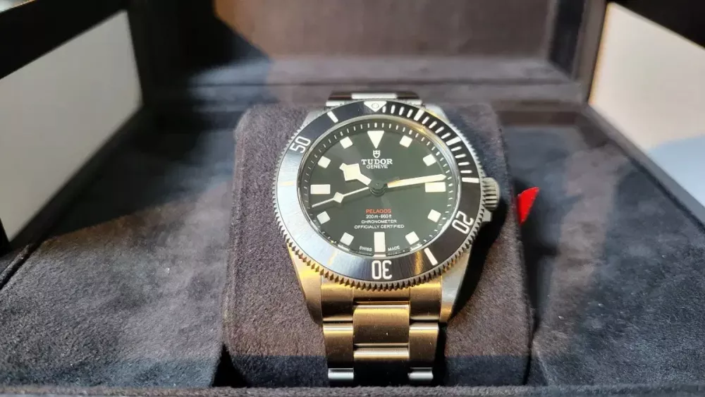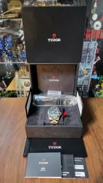 튜더 펠라고스 39 검판 상태 최상 중고제품 합리적 가격으로 판매합니다. 구성 : 시계본품, 박스, 워런티카드, 인스트럭션, 여분코, 교체용 러버 스트랩 풀구성 + 구매영수증 모델명 : M25407N-0001 디테일 : 티타늄 검판 39mm / 2등급 티타늄 브레슬릿 / MT5400 칼리브 / 70시간 파워리저브 스탬핑 : 2023년 국내백화점스탬핑<영수증 확인 가능> <28년까지 워런티 유지> 컨디션 : 시계 글라스 및 베젤 쪽 매우 깔끔하고 티타늄 특성상 버클 부에만 아주 미미한 사용감만 있습니다. 러버밴드는 전체 미사용 상태이며 깐깐한 기준으로 9.5/10 컨디션입니다. -> 사진 참조 컬렉션 목적이 커서 실사용도 매우 적어 무브 컨디션도 당연히 건강한 상태라 예상됩니다. 할인 없는 튜더 판매정책 상, 1년 조금 더 보유만 한 제품을 2백만원 이상 감가된 중고입니다. 새제품이라 생각하고 구매하셔도 크게 틀리지 않을 겁니다. 실물 더 깨끗합니다. 주말<광교역 인근> 주중<잠실역> 시간 정해 직접 확인하시고 거래하시길 추천합니다. 단 노리턴 조건으로 택배 가능하며, 원하시는 안전 거래를 위한 조건 및 인증 다 들어드립니다. 터무니 없는 네고 등 제안은 무시 혹은 차단합니다만 거래 방식으로 인한 네고는 인정합니다.