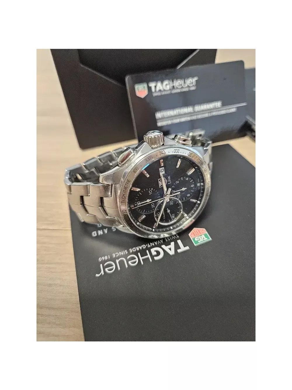 태그호이어 링크 크로노 칼리버16 오토 풀셋 입니다 43mm, 실착용 횟수적어 약간의 생활스크레치 외엔 퍼펙트한 상태 입니다 세종시 입니다 일일시간오차 1초 로 시간매우 정확합니다 잠실 입니다 공일공 칠오사이 칠일일이