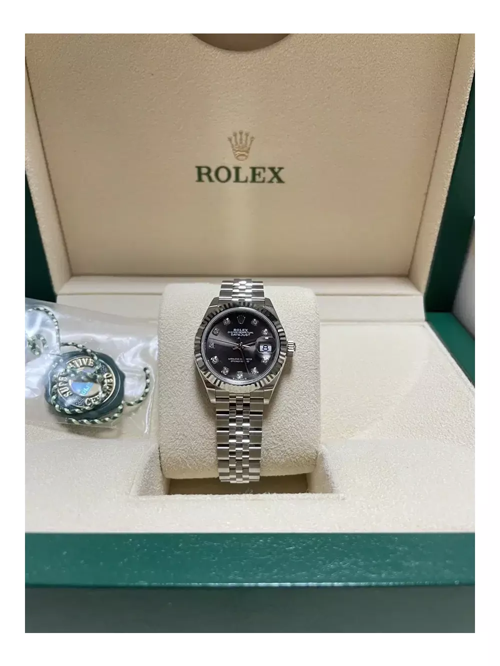 로렉스 279174 데이저스트 28미리 다크로듐 텐포다이아 판매해요. 시계년식은 22년11월식 이고, 구성품은 국내백화점,보증서카드,박스,책자,메달,백화점에서 받은 구성품 풀세트로 다있습니다^^ 시계상태는 새상품급 입니다ㅎㅎ