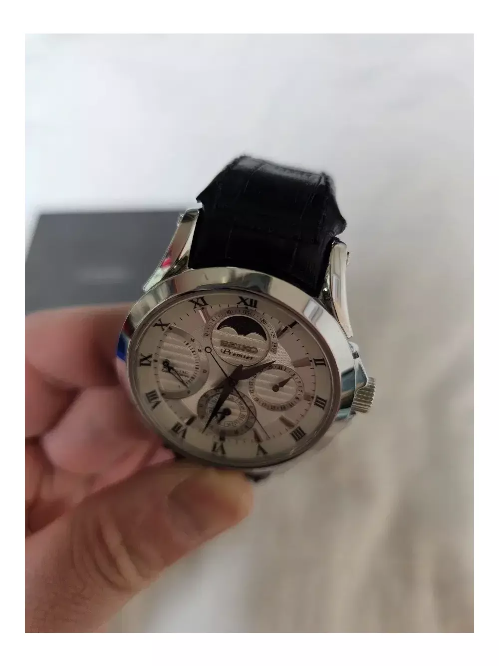 첫월급으로샀던 면세점 세이코프리미엄 문페이즈입니다 적당한가격에 오토매틱사용해보세요 롯데면세점 구입당시 110정도줬습니다 2010년도정도구매 작동잘됩니다 네고 환불x 교신 x