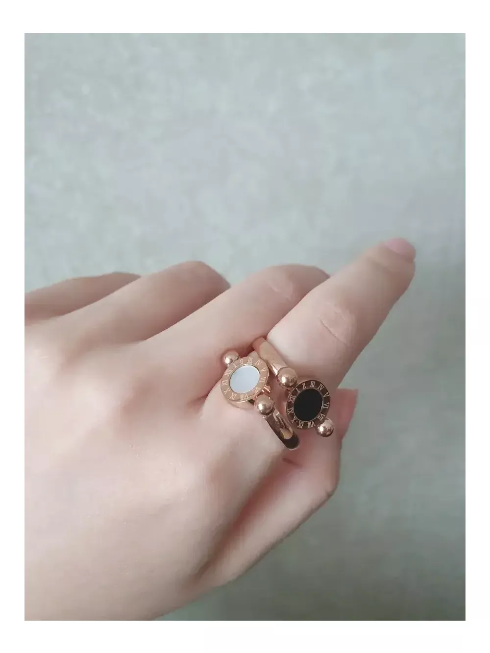 양면으로 착용할수 있습니다. 한 면은 오닉스 느낌의 스톤이, 다른 한 면은 자개 모양의 스톤이 자리하고 있습니다. 강민경 셀럽의 불가리반지와 매우 흡사합니다. 이 제품의 경우, 불가리 로고가 아닌 로마숫자가 원을 따라 둘러져 있습니다~ :) 때에 따라 오닉스와 자개느낌의 스톤을 적절하게 매치하여 다른 분위기를 만들어 보세요~~ - 약 6호: 1개 - 약 6.5호: 3개 - 약 7호: 2개 - 약 7.5호: 1개 - 약 8호: 1개 구매 원하시는 사이즈와 구매방법 알려주세요~^^ * 저는 보통 검지에 11-12호 정도 착용하는데, 이 반지의 경우 13호를 검지에 착용해도 괜찮았답니다~ :) * 공정과정에서 미세한 얼룩정도는 있을수 있으니, 이점 참고 부탁드립니다. 얼룩이 많이 져있는 상품은 따로 '불량상품'으로 인한 할인가격에 판매중이오니, 이점도 참고 바랍니다~ ⚠️30,000원 미만 구매시, 배송료 부과됩니다. ☝️택배발송 3,000원 ✌편의점 반값 택배 2,100원 (근처 구매자님께서 지정하신 GS25 편의점으로 픽업가셔야 합니다. 기타 자세한 방법은 네이버 검색 활용해주시기 바랍니다.) ? 우편발송 500원 (배송은 3-5일 가량 소요될 수 있습니다. 송장번호 따로없으니 송장번호 알려달라고 하시는 분은 안계셨으면 좋겠습니다~ :) 송장번호 없으므로 분실 시 책임지지 않습니다.) 배송방법은 직접 선택해 주시면 되구요~ 결제금액은 '상품가격' + '원하시는 배송방법의 요금' 입니다~ ? or 상점내 무료배송 상품과 함께 묶음배송 가능합니다. ⚠️에누리, 교신, 교환 및 환불 불가하오니 신중하게 구매해주시기 바랍니다. 꼭 구매하실 분만 연락주시기 바랍니다. 감사합니다.