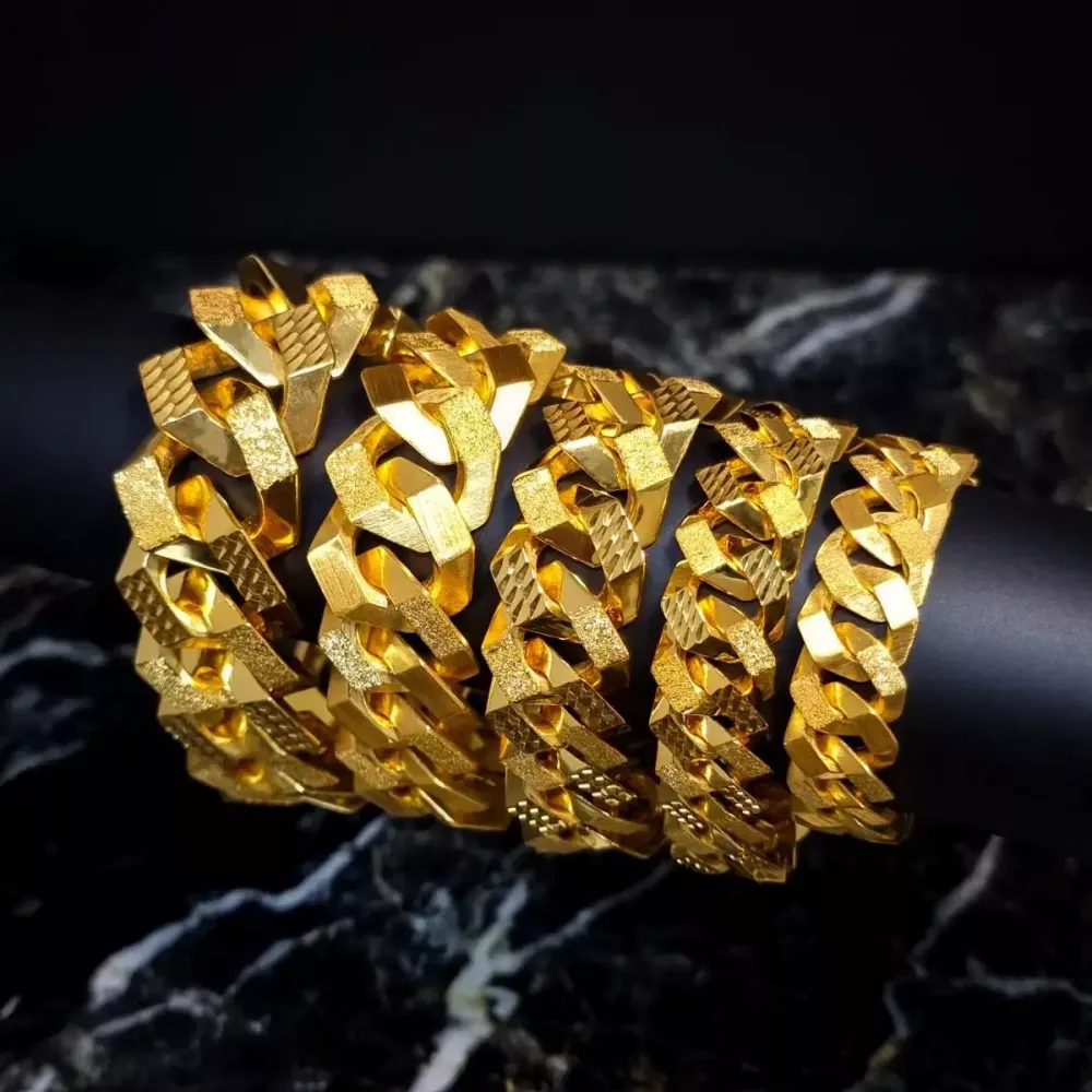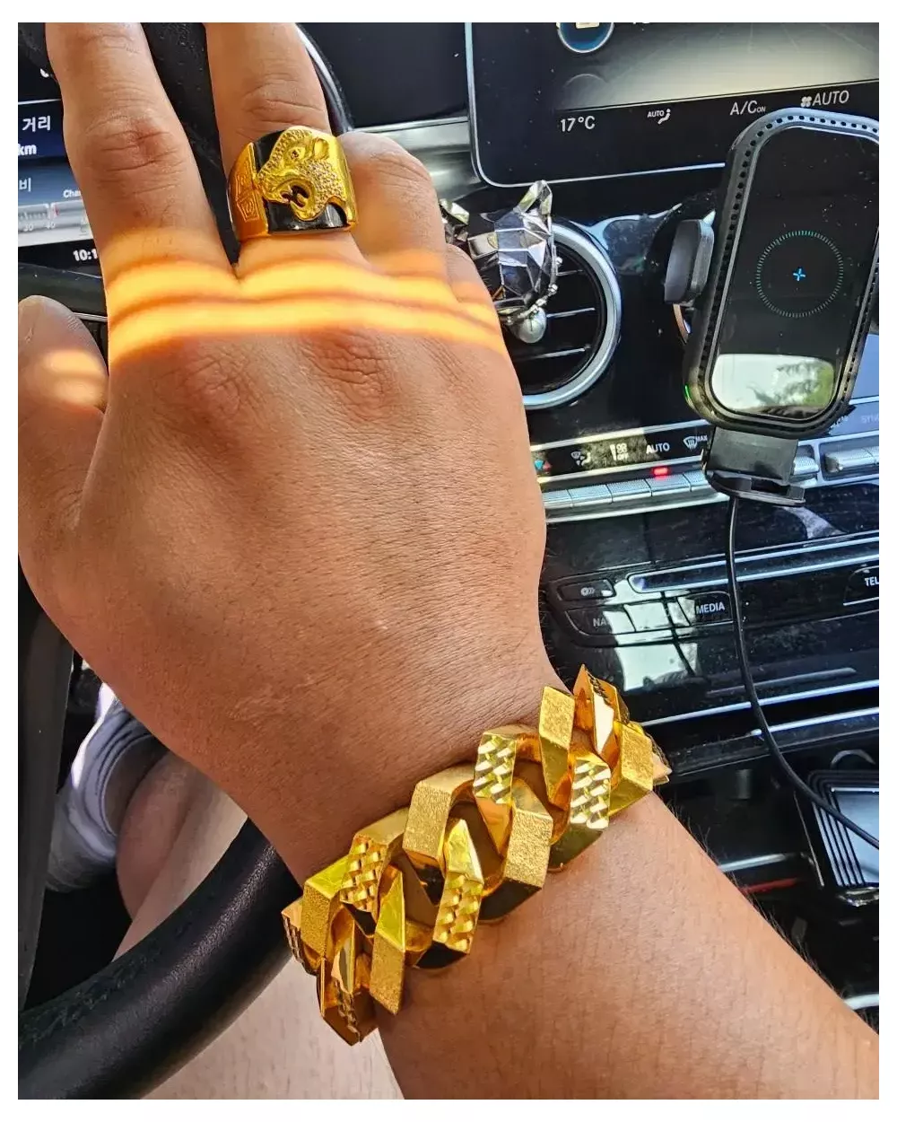 ※타 업체에서 구매하시더라도 제품 소재가 어떤것인지 꼭 문의 후 구매하세요. (금.순은 이 아닐경우 알레르기가 발생합니다) ⬆️위 5번~12번 사진은 A.C.C 구매 고객님들의 100% 실제 후기 사진입니다⬆️ ■제품명: 팔각체인 5종 ■소재: 법정순은92.5+순금도금 ■팔찌 폭 크기 12.5mm▶️ 24k 20돈 크기 15mm ▶️ 24k 25돈 크기 17mm ▶️ 24k 35돈 크기 21mm ▶️ 24k 50돈 크기 25mm ▶️ 24k 70돈 크기 29mm ▶️ 24k 100돈크기 33mm ▶️ 24k 100돈이상 크기 ⛔상세내용 더보기 필수⛔ 저희만의 차별점을 "꼭" 확인해주세요. ●번개장터 판매 경력12년, 1000개이상의 후기와 평점이 말해주는 "만족감과 신뢰" ●법정 순은으로 "1:1맞춤 핸드메이드"제작 ●평생 A/S 가능 ●대용금이 아닌 "진짜 금"으로 도금 ●타 업체처럼 말만 두꺼운 도금이 아닌 진짜 두꺼운 "두께도금" ●진짜 금처럼 체인 사이사이 마감까지 "완벽한 퀄리티" ●타 업체대비 "진짜 금처럼 묵직한 무게감" (크기만 크다고 좋은게 아닙니다.) ●합리적인 가격 ●신주.써지컬같은 패션악세사리는 소리부터 다른 쇳덩이일뿐 ●금과 은이 알러지반응 가장적습니다 (신주.써지컬은 알러지가 생기기 쉽습니다) ●신주.써지컬과는 달리 "재산"으로서의 가치있는 상품(신주.써지컬은 구매하는순간 사라지는 돈) ●은/도금/14K/18K/24K/백금/순금 "원하시는대로 제작가능" ⬇️⬇️⬇️⬇️⬇️⬇️⬇️⬇️ ?타업체와 다른 차별점? ***저희는 이윤이 아닌 "고객님의 만족"을 추구합니다. ***최대규모 귀금속단지인 종로에서 20년이상의 세공경력을 바탕으로 1:1맞춤제작후 국내 3손가락 안에 꼽히며 다수의 명품브랜드와 협업중인 40년 경력의 귀금속 도금전문 기업에서 도금을 진행합니다. ***저희는 법정순은 소재로 제작한 제품에 24K 순금 으로 도금을 입힙니다. (진짜 금으로 도금합니다 싸구려 대용금이 아닙니다) ●귀금속 24k 순금 도금 (공장가 기준) 3미크론: 30,000원 5미크론: 50,000원 ***써지컬.신주는 은으로 제작한 상품과 달리 찰랑찰랑 가벼운 소리가 나며, 소재의 특성상 진짜 금처럼 묵직한 무게감을 구현할수 없고 구매후의 값어치가 없는 그냥 쇳덩이일뿐인 패션악세사리입니다. ***써지컬,신주는 10~20만원에 구매하는 순간 사라지는 돈입니다. 은으로 제작한 상품이 비싼 이유는 소재로 인한 금액 차이만 있을뿐이며, 소재의 금액을 뺀 세공비,도금비는 차이가 없습니다. 한번의 구매로 평생 사용하실수 있는 상품을 구매하시기 바랍니다. ***타 업체와 팔찌 폭(예 21mm) 이 같더라도 꼭 은 중량을 확인하세요. 저희는 진짜 순금 팔찌의 디자인과 무게감까지 생각하여, 타 업체 대비 최소5돈 이상의 중량을 더 추가해 세공합니다. 낮은 중량으로 팔찌 폭만 키울 경우 할로우 (속이비어있는체인) 이거나 체인 링크마다의 간격이 벌어져있어 굴빵함과 착용시 묵직함이 다릅니다. ***귀금속 소재인 금.은을 제외한 악세사리 소재 신주.써지컬.브라스.텅스텐 등은 그 소재자체로 알러지 반응을 유발하는 경우가 많은 싸구려 악세사리 일 뿐더러 마진을 위해 대용금(금을 대신하여 색만내는 합금) 으로 도금을 입힌다고 확신합니다. 대용금을 이용한 도금은 그 자체만으로도 알러지를 유발할수 있고 특히 써지컬은 피어싱용 저품질 도금인 이온도금만 가능합니다. ***착용후 질릴경우 언제든 금은방에 순은으로 판매 가능한 재산으로 분류되는 귀금속입니다. ⬇️⬇️⬇️⬇️⬇️⬇️⬇️⬇️ °세공 국내 최대 귀금속 단지인 종로에서 20년 이상의 순금세공 경력을 바탕으로 고객님들이 꼭 고가의 순금제품이 아니더라도 순금이상의 만족감을 느끼실수 있도록 수많은 시행착오 끝에 보다 쉽고 부담없는 가격에 착용하시면서 최상의 착용감, 만족감을 경험해보시기 바랍니다. °도금 1979년 설립 후 40년간 귀금속 도금만 전문으로 하며 국내 3손가락 안에 꼽히는 최대규모의 귀금속 전문 도금기업에서 도금 작업을 진행 합니다.
