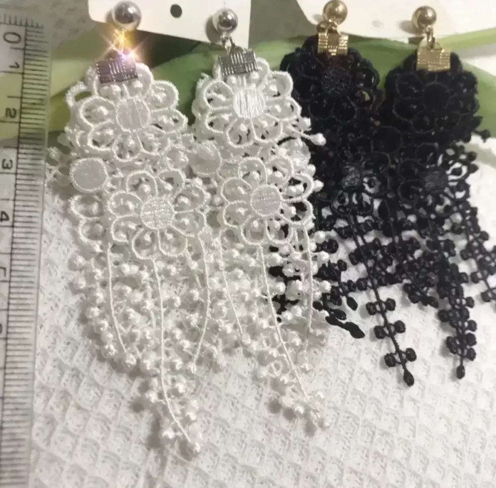 새제품) 레이스 귀걸이 화이트 블랙 두개 오천원 > 시계/쥬얼리