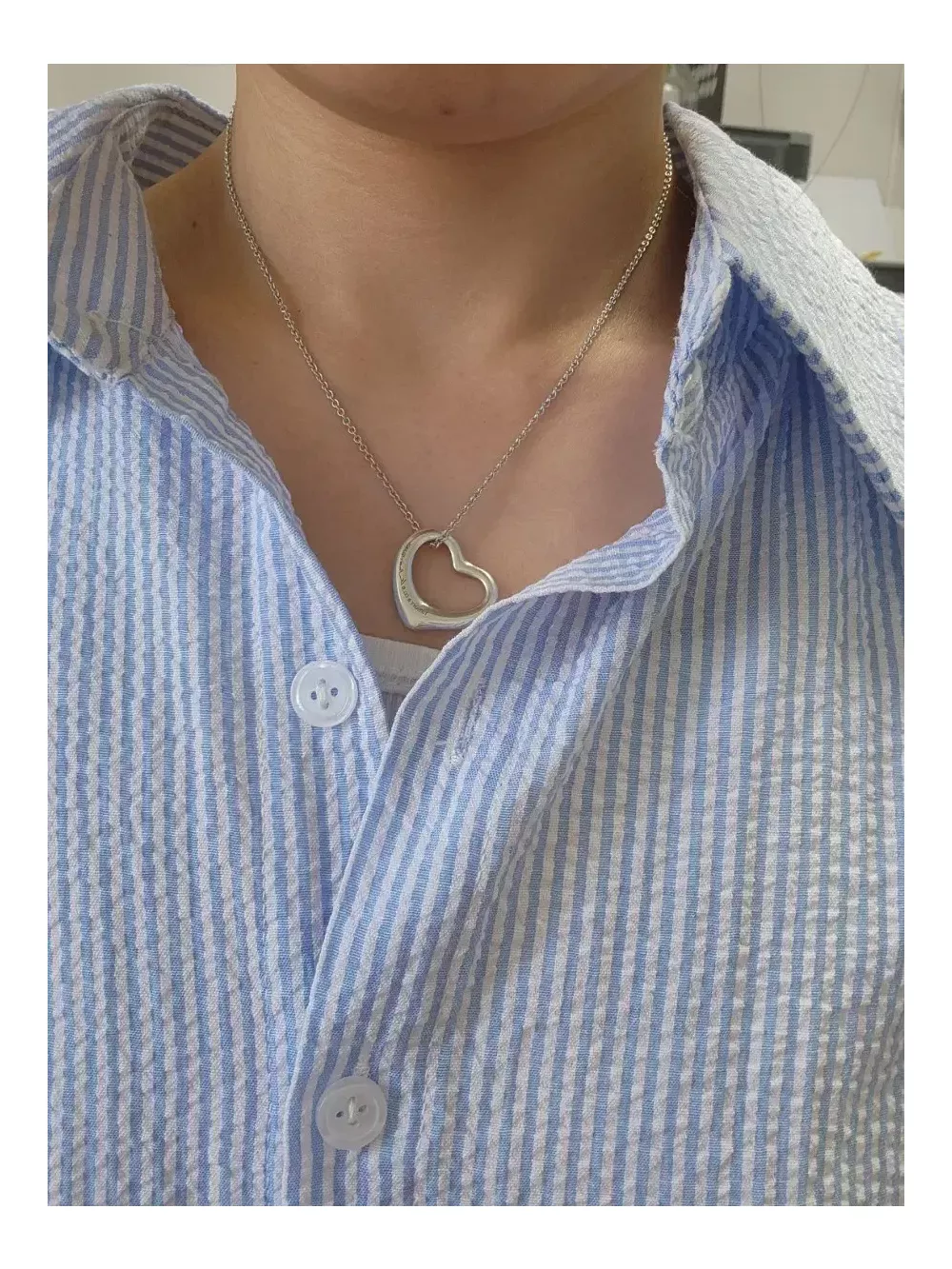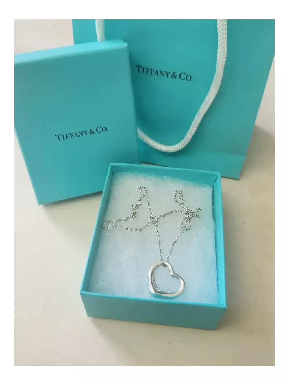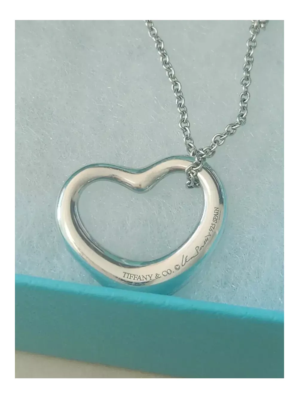 티파니 오픈하트 목걸이 입니다. 펜던트 22mm 로 작지않아요. 포인트주기에 너무 예쁜 목걸이입니다. 정품아닐시 100프로 환불드려요. 반품환불취소어려워요. 택배비 별도 3000원