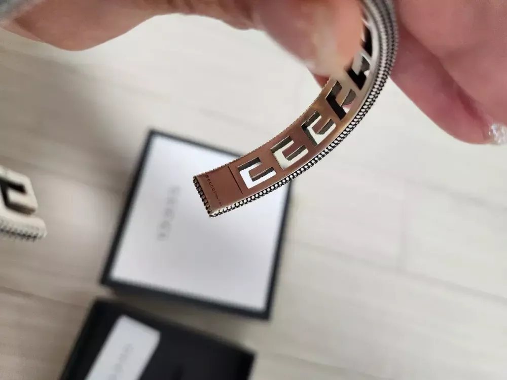 구찌 G 모티프 스퀘어 브레이슬릿 실버 넓은버전입니다. 현재 단종모델로 구하기 어려운모델입니다. 사이즈는 17사이즈로 남성 평균사이즈입니다. 사용감없는 새상품이며 정품아닐시 100프로 환불드립니다. (번개케어로 정품인증 받고 구매하셔도 됩니다) 택배비 별도 3200원입니다.