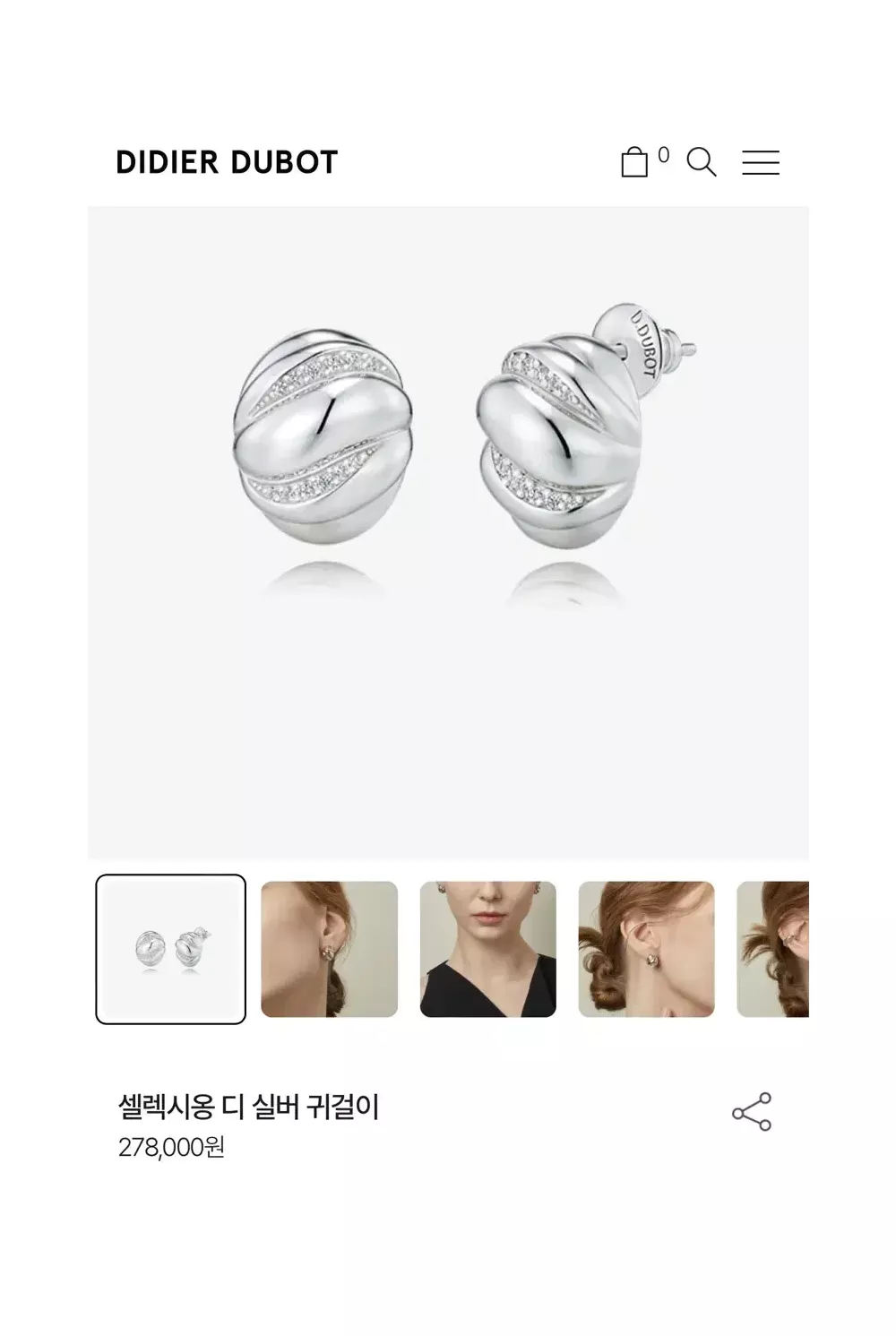 디디에두보 셀렉시옹 디 실버 귀걸이+귀찌입니다. 고급스럽구 예뻐요~ 사진 더 원하시면 보내드릴게용! 쇼핑백은 있는데 빛받아서 컬러가 다 빠졌는데 원하시면 같이 보내드려용:)