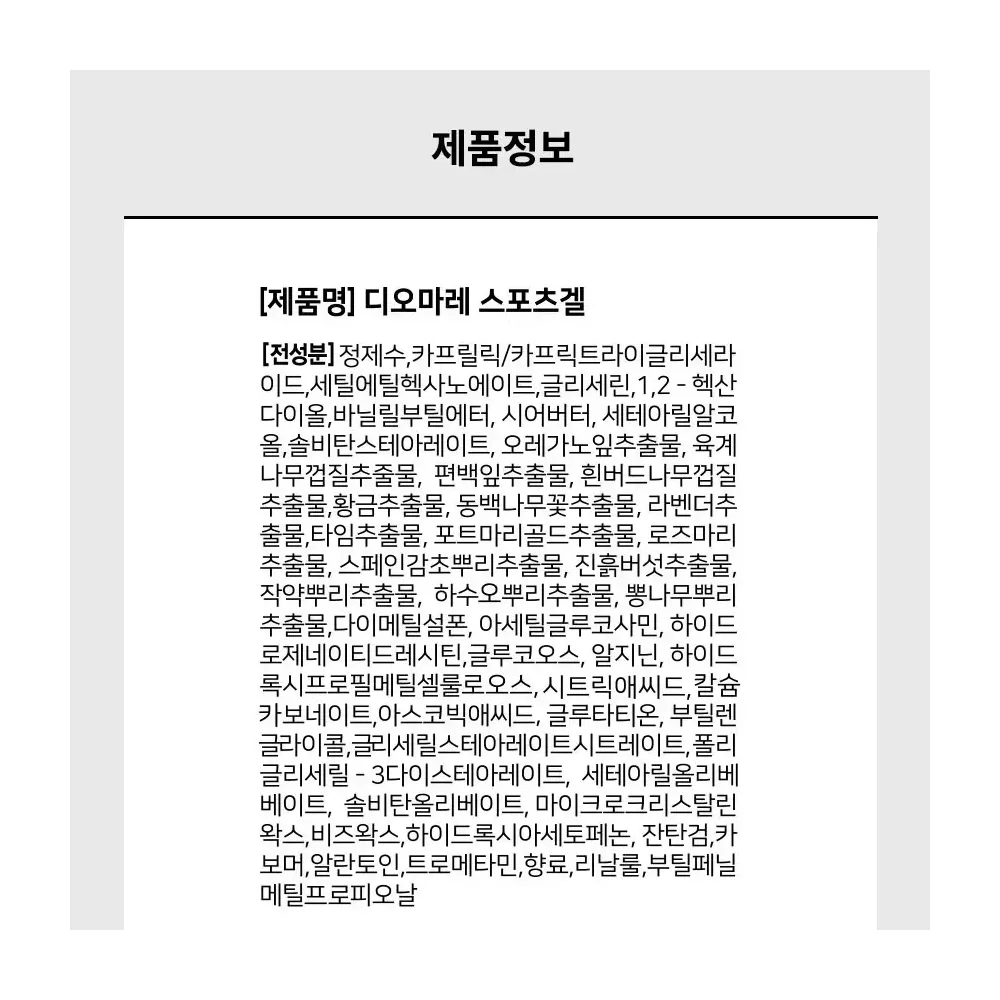 바른 후에 후끈후끈 운동 전 혈액 순환과 체온을 올려 근육이 준비될 수 있도록 워밍업 하고, 운동 후에 혈액 순환을 높여 촉진시켜 리커버리에 도움을 주는 스포츠 크림입니다. 별도 판매중인 일체형 마사지기 세트 제품은 크림을 손에 묻힐 필요 없이 운동 부위에 바를 수 있게 하며, 크림을 바른 후 전원을 켜면 진동과 미세전류를 발생시켜 크림 성분이 피부에 잘 전달 되도록 해 줍니다. 운동 하시는 분들의 필수품 디오마레 스포츠겔을 시중가 및 온라인 최저가보다 저렴하게 판매합니다. 많은 관심 부탁드립니다. 감사합니다. (당일 오전 주문시 당일 택배 접수합니다 / 사무실 직접 수령 가능합니다 단, 외부 출장 등으로 자리를 비울 수 있으니 미리 확인 바랍니다)