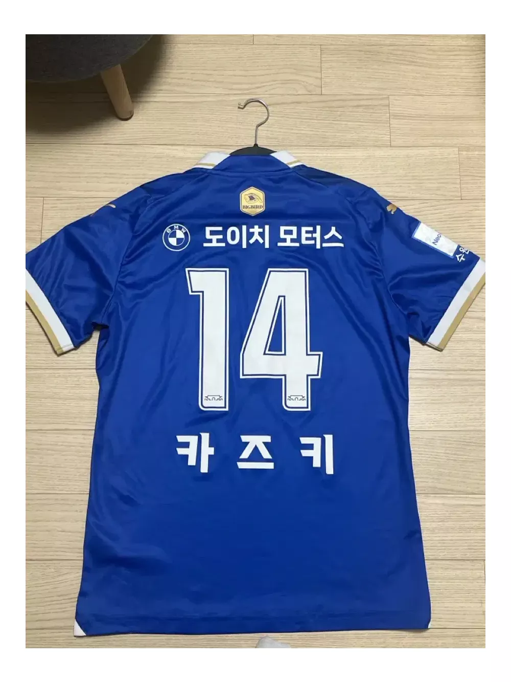 수원삼성 카즈키 유니폼입니다 딱 4번만 입었고 크게 눈에 띄는 하자는 없는데 예민하신 분들은 피해주시면 감사하겠습니다 연락 주시면 더 자세히 상태 보여드릴게요 사이즈는 L입니다