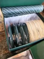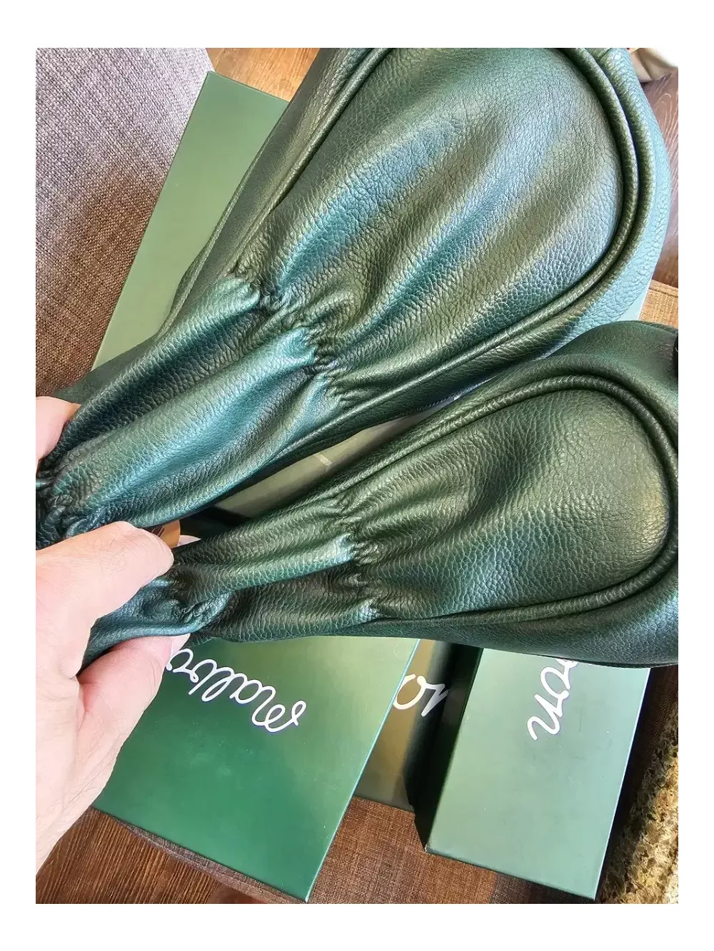 말본 버킷캐디 그린 헤드커버세트4종+아이언8P세트 미사용 새상품. 정품. 모델명:M2343PCV 드라이버1개, 우드1개, 유틸1개, 퍼터(말렛과 블레이드중 택1)1개 4종. (23년 신형 아이언커버1세트를 선물로 드립니다.) 10일간 한정 안전결제하시고, 톡 메세지나 택배신청 요청사항에 퍼터타입을 꼭 기재해 주세요. 정품케이스, 속지, 라벨텍 모두 있는 풀패키지. 선물용으로 좋습니다. 정품과 가품의 차이는 큽니다. 원단은 물론 재봉선의 실부터 큰 차이가 납니다. 구성 드라이버커버 1개(공홈정가 139,000원) 우드커버 1개(공홈정가 129,000원) 유틸커버 1개(공홈정가 129,000원) 퍼터커버 1개(공홈정가 139,000원) 아이언커버 8개(증정) 10만원 상당. 아이언커버의 구성 5~P,A,S 오프라인매장 150만원 이상 구매고객에게 증정한 한정판 커버입니다. 통상 8~10만원 정도에 가격이 형성돼 있습니다. 모두 말본공식홈가 600,000원대의 반값도 안 되는 수준으로 드립니다. 퍼터는 말렛형과 블레이드형 중 택1해주세요. 개인적으로 많은 고가의 헤드커버를 경험했지만 말본만한 것이 없습니다.