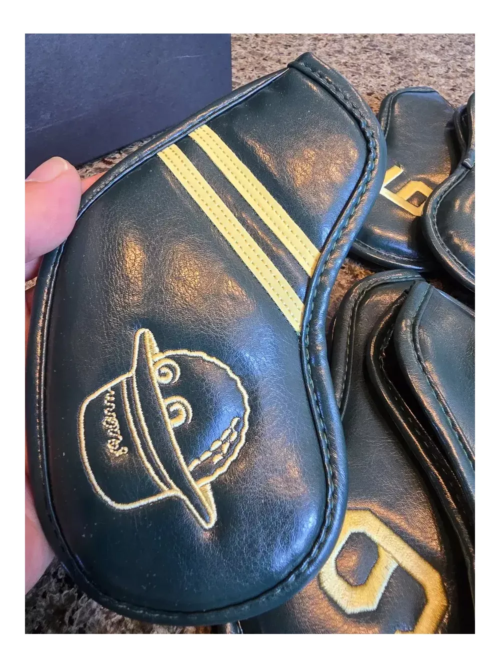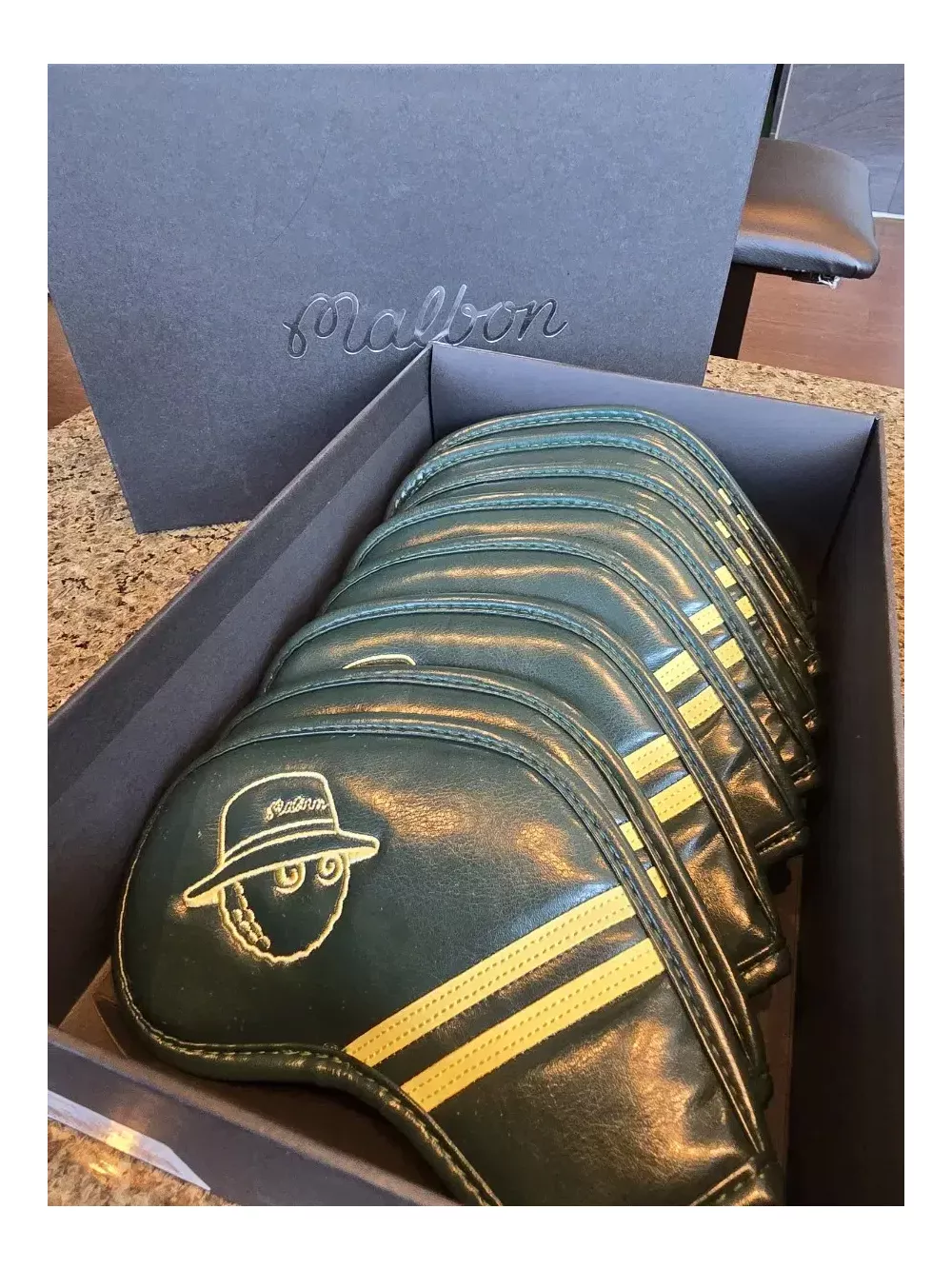 말본아이언커버 8세트 미사용 새상품 정품. 남여공용. 정품박스에 담겨 있어 선물용으로 좋습니다. 안전결제하세요. 10세트한정 특가세일 구성 5,6,7,8,9,P,A,S (정품박스포함) 8개로 구성된 세트이며, 백화점 및 로드매장 150만원 이상 고객에게 증정했던 모델입니다. 말본아이언 커버의 특징은 깃털처럼 가벼워 클럽백 중량에 영향을 주지 않습니다. 따라서 찍찍이, 자석스트랩이 없어도 클럽에서 빠지거나 헐겁지 않습니다. (찍찍이, 마그네틱스트랩이 있다면 모두 가품) 4번부터 구성돼 10개세트로 구성된 말본아이언커버는 모두 가품입니다. 온라인에 돌아다니는 말본커버는 대부분 가품으로 보셔도 무방합니다. 정품 말본아이언커버는 5,6,7,8,9,P,A,S 8개입니다.