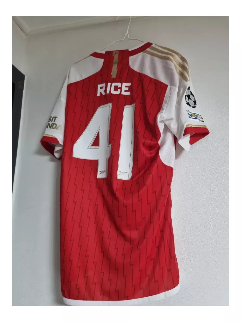 22-23 아스날 홈 라이스 마킹 입니다. 챔스랑 유에파 패치 붙어있어용 택은 없지만 실착 없는 사실상 새 제품 입니다