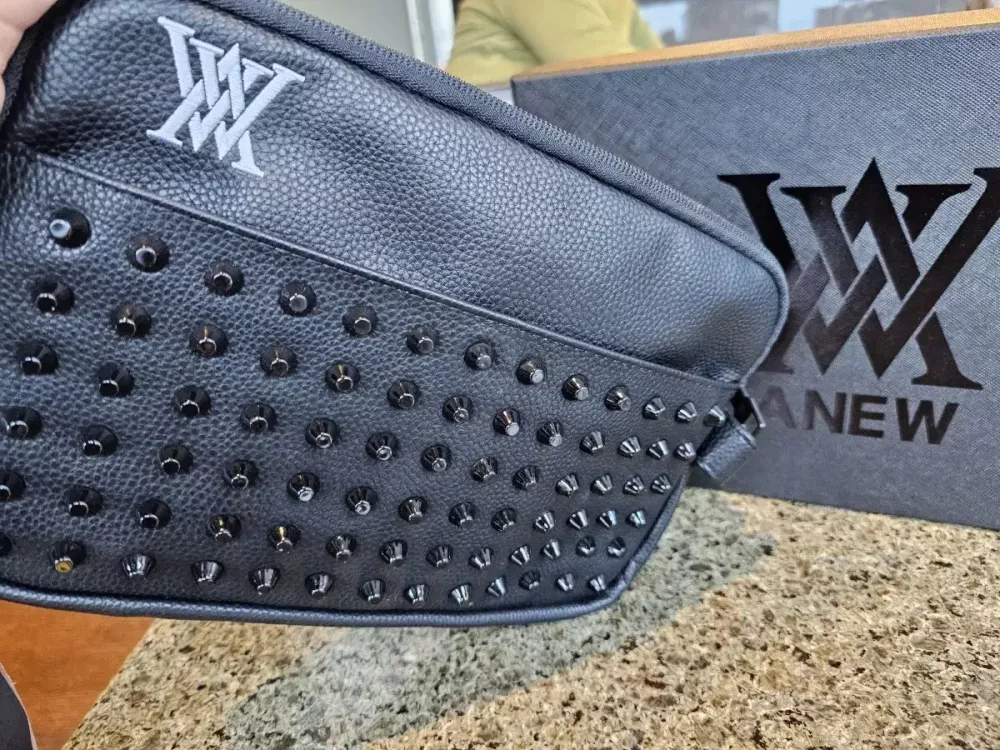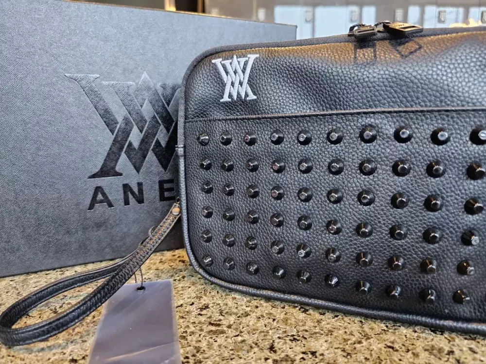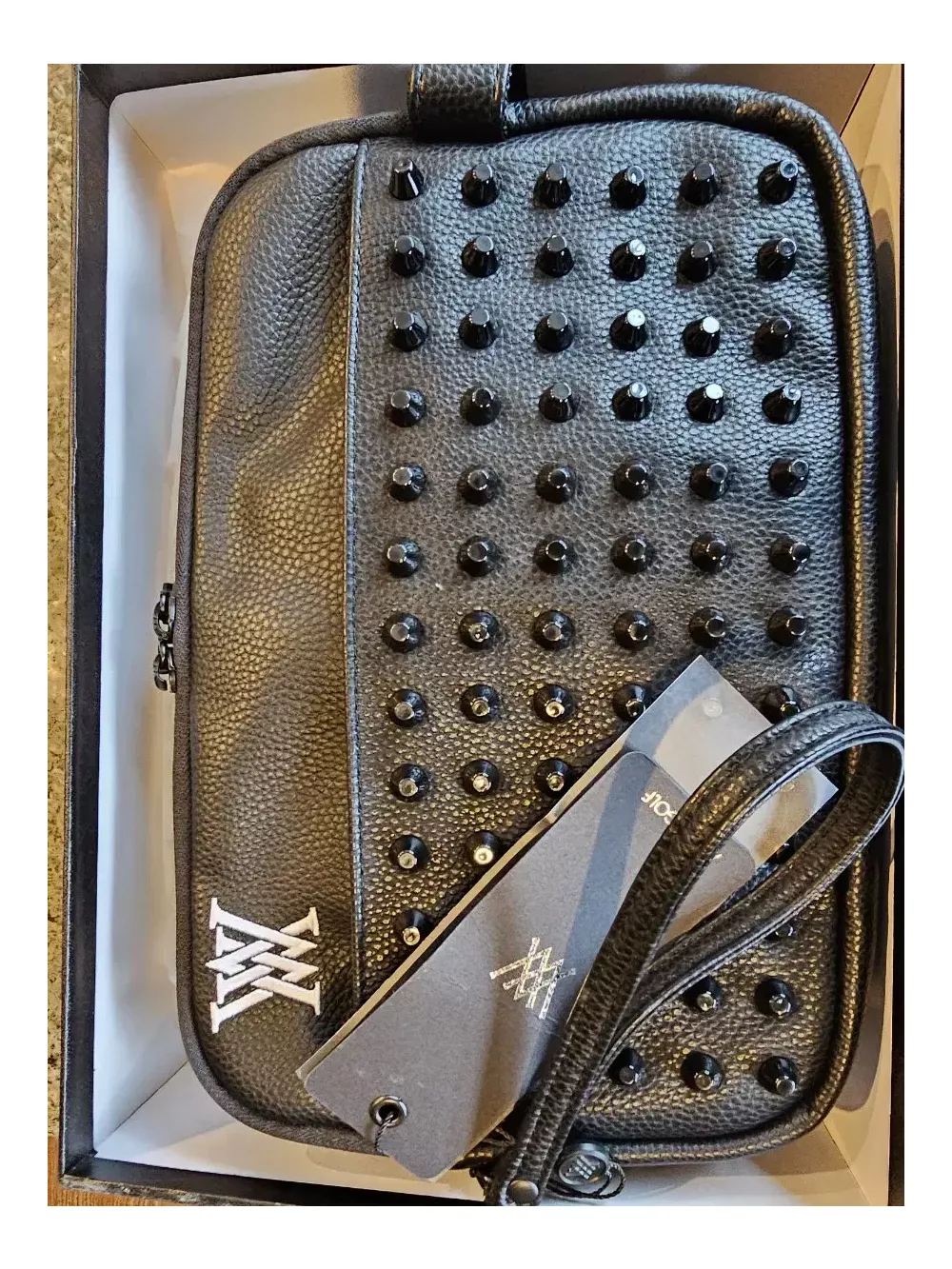 어뉴 시그니처 스터드 파우치 블랙 새상품. 남여공용. 병행수입. 이월상품 10세트한정 구성 파우치 본품, 정품박스, 내피 더스트백. 선물용으로도 좋습니다. 안전결제하시면 (평일낮 2시 이전 주문시)1~2일 후 받으실 수 있습니다. 긁힘, 오염 등에 강한 인조가죽 소재로 부드럽고 잘 닦여 흰색이여도 관리가 쉽습니다. 사이즈 info 가로30x세로20x폭10 내부 info 공9개 넣을 수 있는 볼포켓 각종 티10개를 꽂을 수 있는 티포켓 볼마커,장갑 등을 수납하는 망사오픈포켓 등으로 구성. Two-Way 더블지퍼. 전면 히든지퍼포켓과 어뉴의 상징인 스터드로 디자인되었습니다.