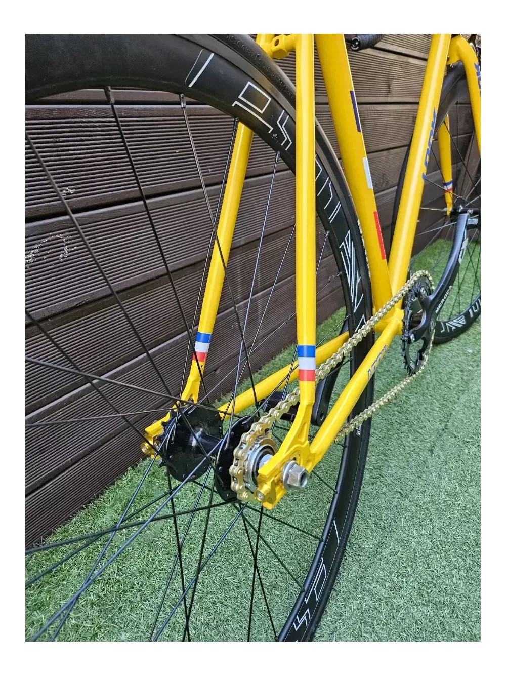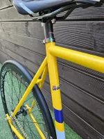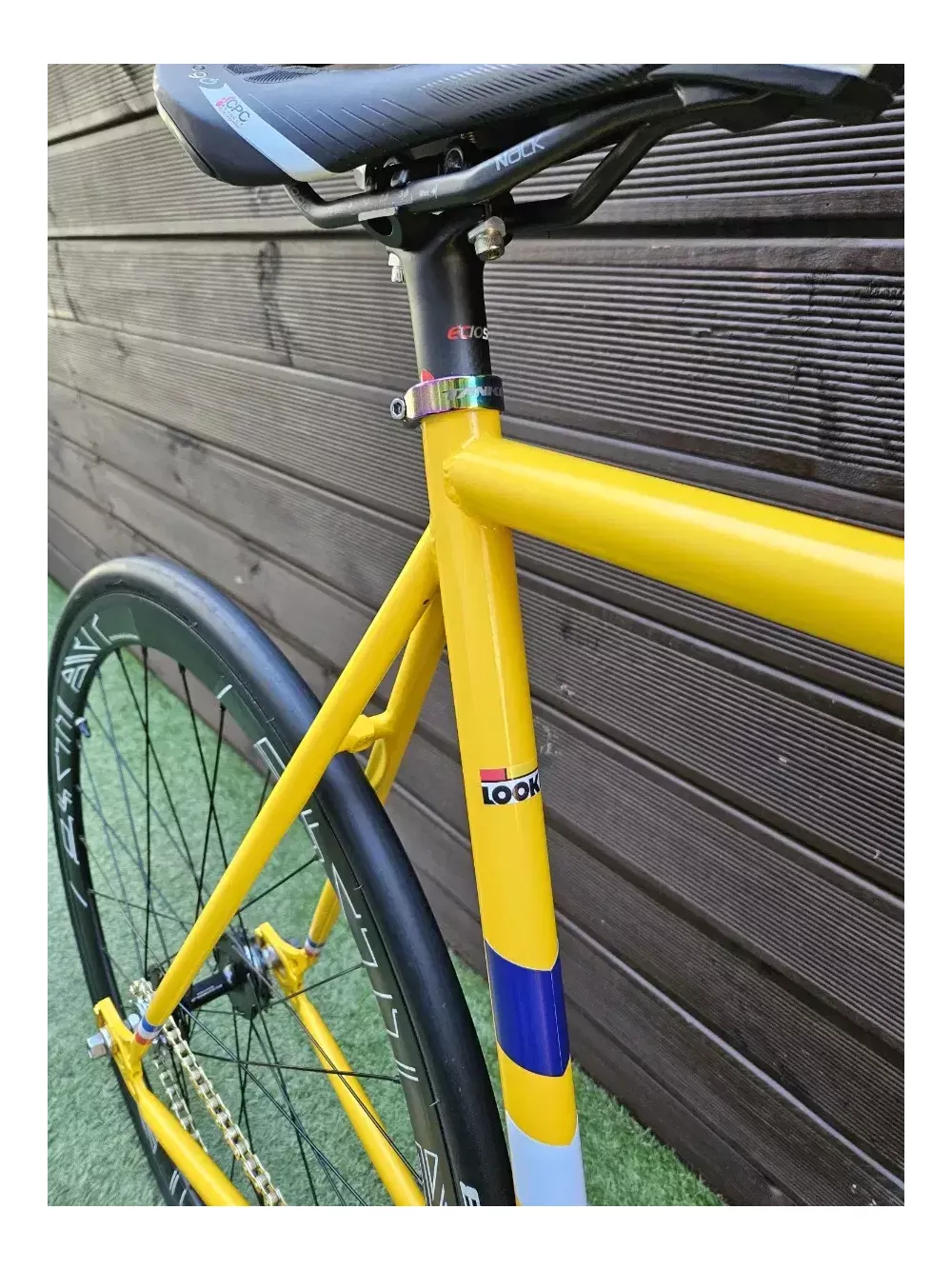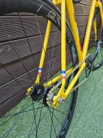 룩 디자인으로 빌딩한 픽시 팝니다 크로몰리 프레임 카본 핸들 스템 안장 금장 체인과 체인 텐셔너 알루미늄 페달 라이더스웨이 휠셋