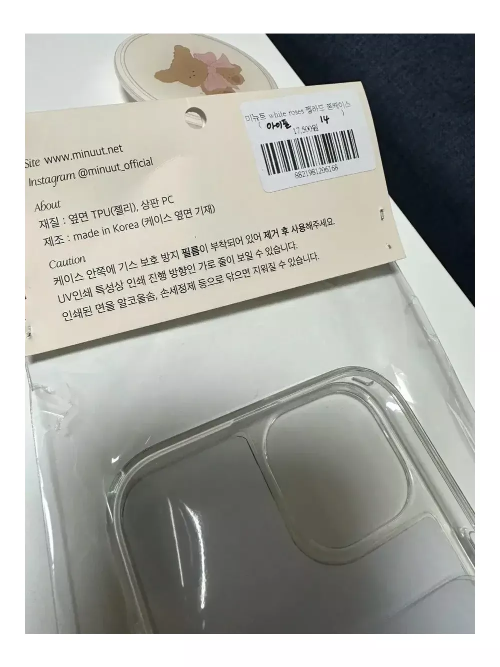 아이폰 14 미뉴트 정품 케이스 입니다. 젤 하드 케이스로 사이드쪽은 완충되는 케이스입니다. 변색도 없습니다. 제가 14프로인데 잘못 구매해서 다시 구매할 예정이라 판매합니다. 저는 꼭 다시 살거에요 너무 예쁩니다. 네고는 불가하다고 말씀드립니다..! 택배비는 별도이며, 반값택배 일반택배 모두 가능합니다. 문의사항은 채팅주세요~