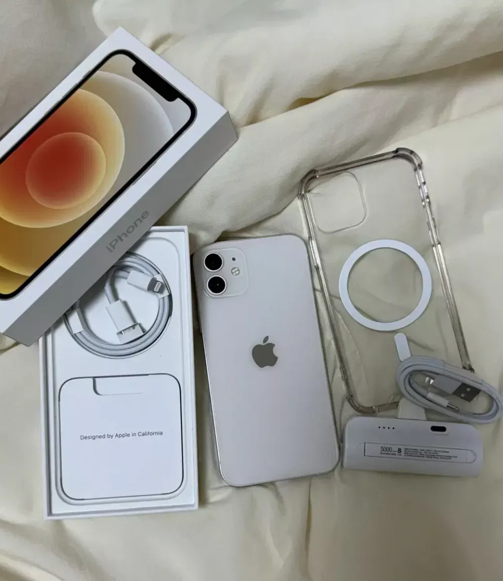 아이폰 12 화이트 128기가 판매합니다! 케이스랑 필름 한 번도 안빼서 액정이랑 외관 깨끗해요 배터리 효율 75%고 원하시면 케이스랑 보조배터리랑 케이블 드려용 ‼️가격 택배비포함 310,000원입니다‼️