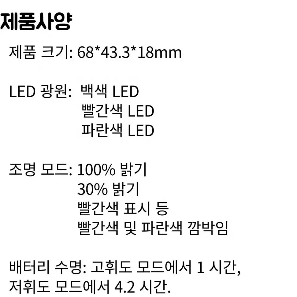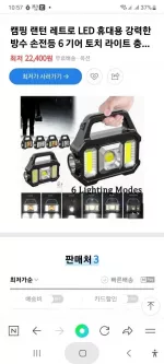[1번]충전식 또는 태양열충전가능해요 보조배터리로 사용할 수 있어요 야외활동에 좋은 라이트입니다 작지만 매우 밝아요 듀얼충전 시스템 USB충전 + 태양광충전 배터리 잔량표시 스마트폰 보조배터리 기능 생활방수 사이즈(mm) 170 × 44× 147 충전지 용량 2500mAh 무게 470g 평균사용시간 7시간 _________________ [2번] 미니 사각랜턴 23년형 배터리 업그래이드버전 중간밝기로 4시간 넘게 사용할수있어요 C타입으로 충전해서 사용합니다 뒷면에 자석이 있어서 차량이나 냉장고에 잘 붙어있어요 캠핑 등산 낚시 작업등으로 추천해 드립니다 표시가격은 2개 가격입니다.