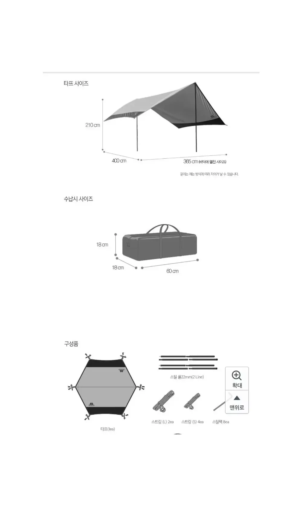 박스 미개봉입니다 방수및 자외선차단 가로 세로 400* 365cm 사이즈 폴대, 보관가방. 고정팩, 연결줄 포함. 풀세트