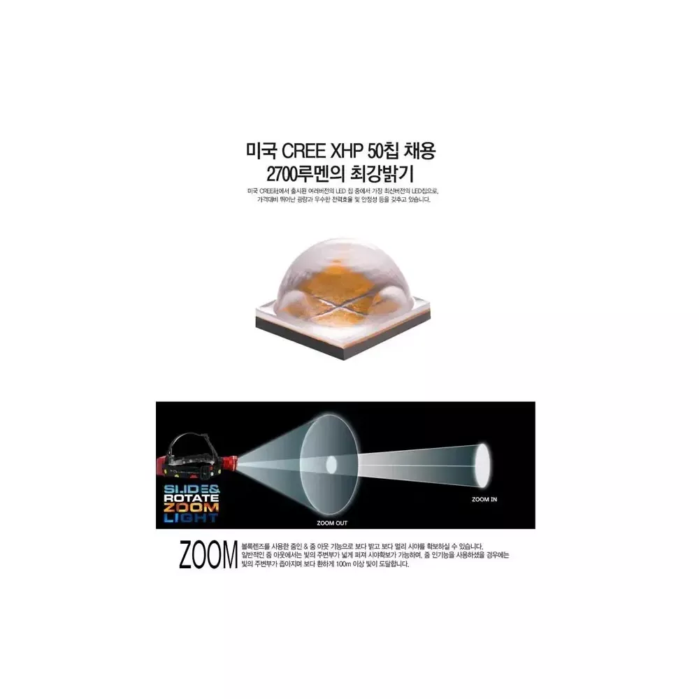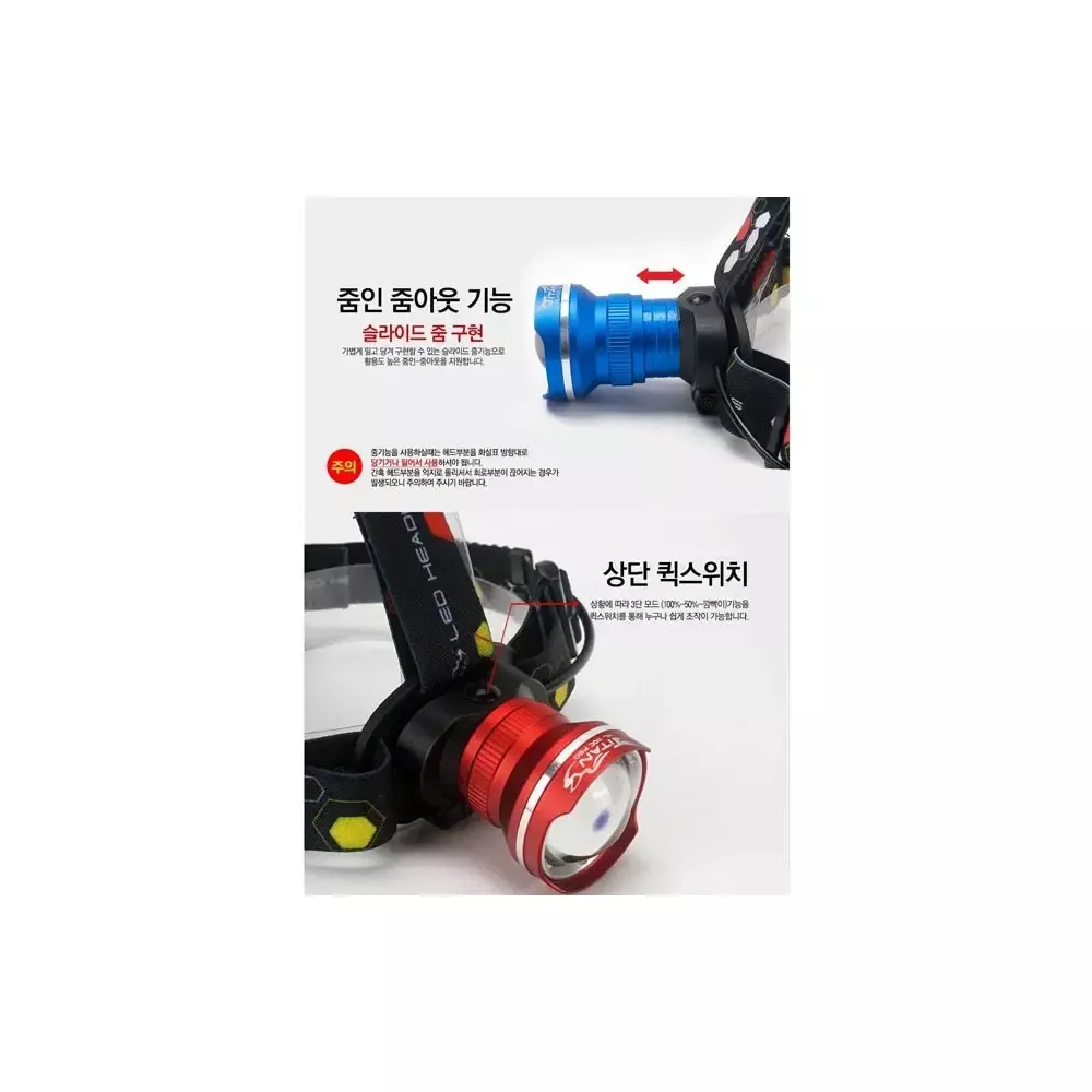 2700루멘 충전식 헤드랜턴 AAA건전지 3개 또는 18650 충전지 1개사용[충전지는 별도구매] 색상 : 블루, 레드 @별도구매가능상품 -.18650 2400mAh 충전지 : 9,000원 -.18650 3600mAh 충전지 : 13,000원