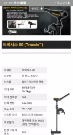 트랙시스 80] 80파운드, 42", 무단가변 speed/맥시마이저, 틸트 익스텐드 핸들, 24v. 백곡저수지와 평택호에서 7~8회 사용했습니다.. 지금은 평택호는 낚시금지입니다.^^;; 외관은 이동중 또는 사용중 생긴 소소한 스크래치정도입니다.. 구입처는 코넷마린입니다..