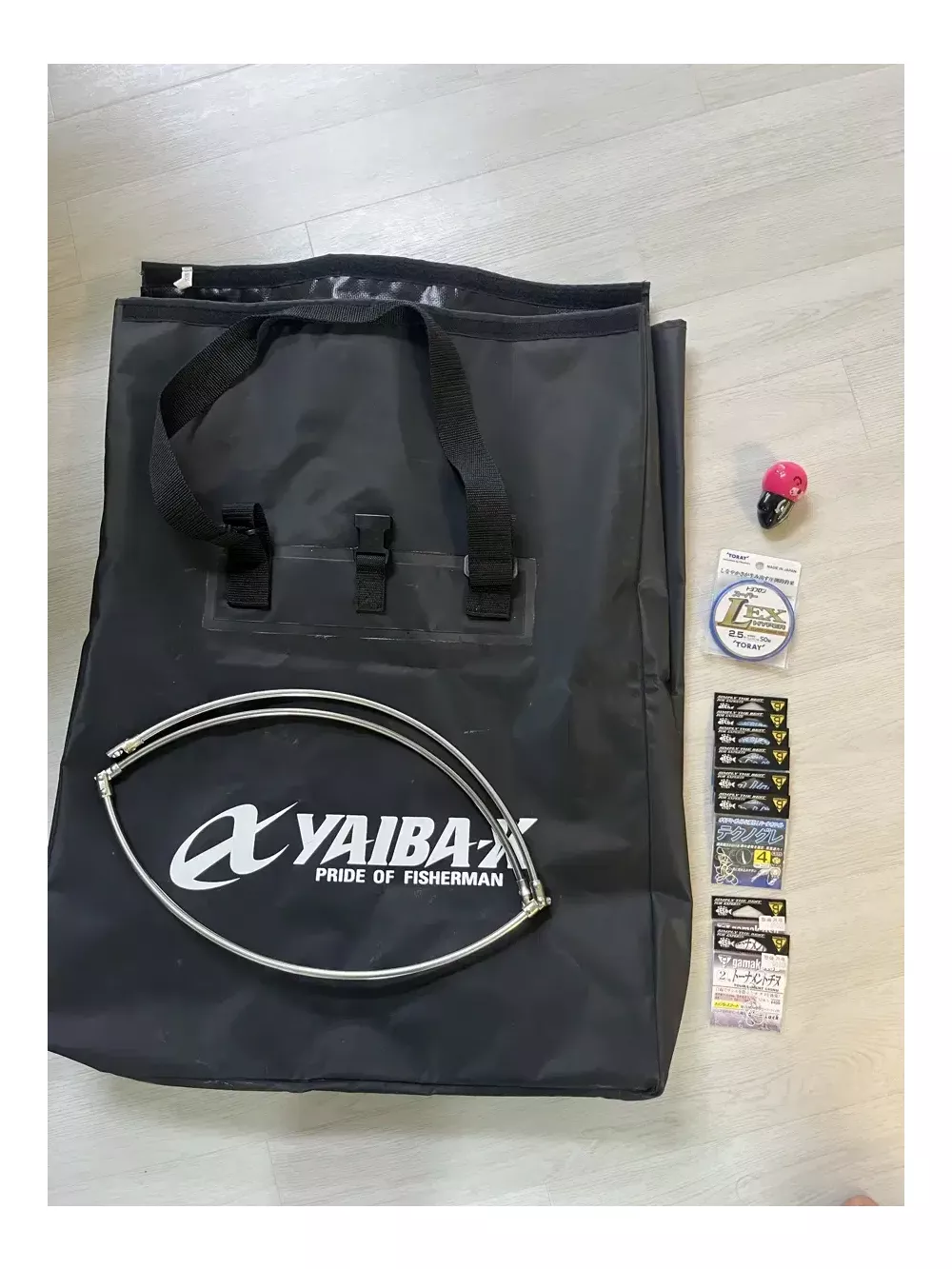 야이바 방수가방 가마가츠 벵에돔 바늘 4호 6개 가마가츠 감성돔 바늘 2호 2개 캐릭터 구멍찌 1호 토레이 목줄 2.5호 일괄입니다 조인트 M8 50cm 스텐 뜰채프레임은 같이 드립니다 울산 직거래 가능합니다