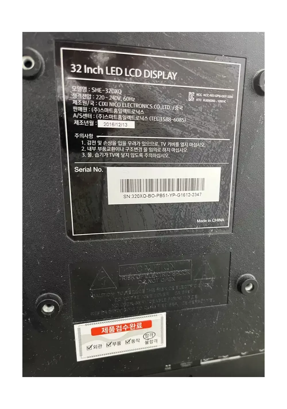 스마트라 32인치 LCD LED TV입니다. 모델명 SHE-320XQ이고 모서리 보호테이프 그대로 붙어있고 상태좋아요 ! 직거래만 가능 (구매자 픽업)