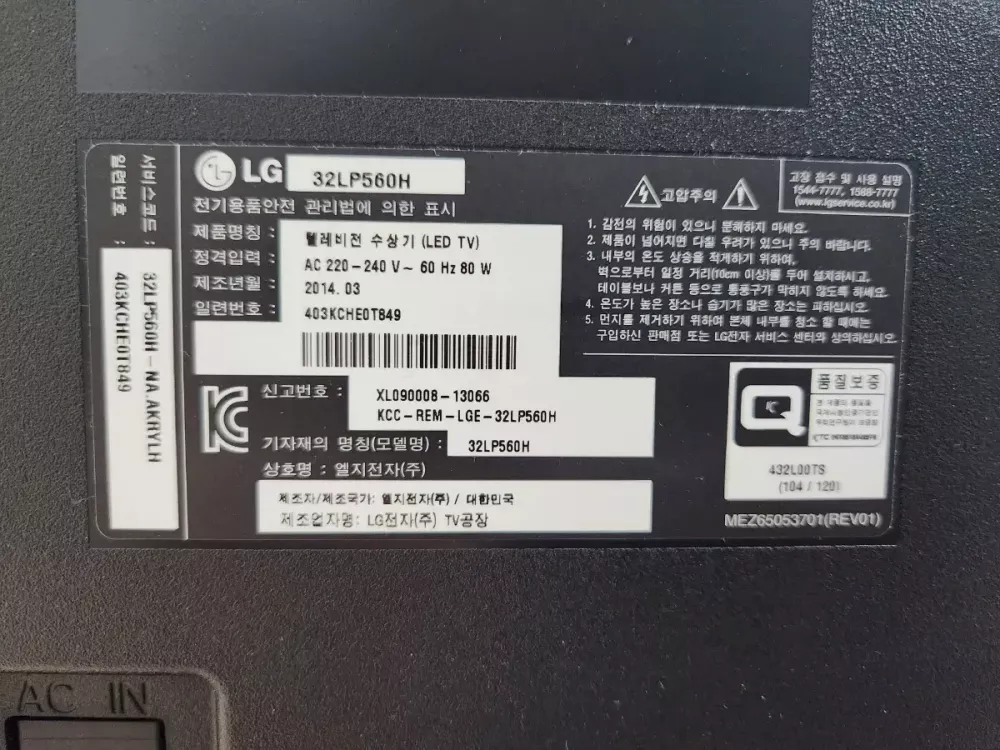 LG 32인치 TV 팝니다. (32LP560H) 제조년은 2014년도이며 아직 화면 잘 나옵니다. 상태 괜찮은 편이며 리모컨 있습니다. 서울 성동구 하왕십리동 근처 직거래 희망합니다. 관심있으신분 연락주세요.