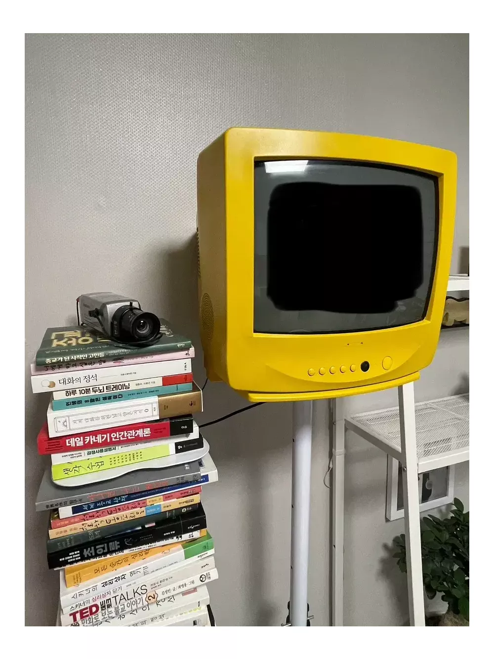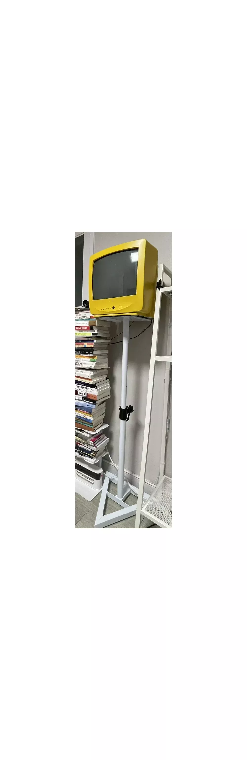 SNS 핫플 감성 인테리어 빈티지 TV 판매합니다. TV+카메라+스탠드 구성입니다. 전원만 꽂으면 바로 카메라 속 내 모습 TV에 나옵니다. 사장님이 DP용으로 안파신다는거 조르고 졸라서 구매했어요. 쨍한 노란색이라 예뻐요! TV 사이즈에 맞는 스탠드도 같이 드려요. (TV 무게가 상당해서 스탠드 알아보다 모니터 스피커 스탠드로 거치 가능 중량 다 확인하고 구매했어요.. 스탠드도 고가입니다ㅠ) 매장에 내 셀카존, 핫플 감성 인테리어로 추천드려요. 저희 집 앞에서 거래합니다. 회기동 산정현교회에서 도보 3~5분 거리에요. 크고 무거워서 차로 오시는걸 추천드려요. 혹 차량 없이 거래하시려면 최소 남자 두분이 오셔야해요. 네고 절대 X
