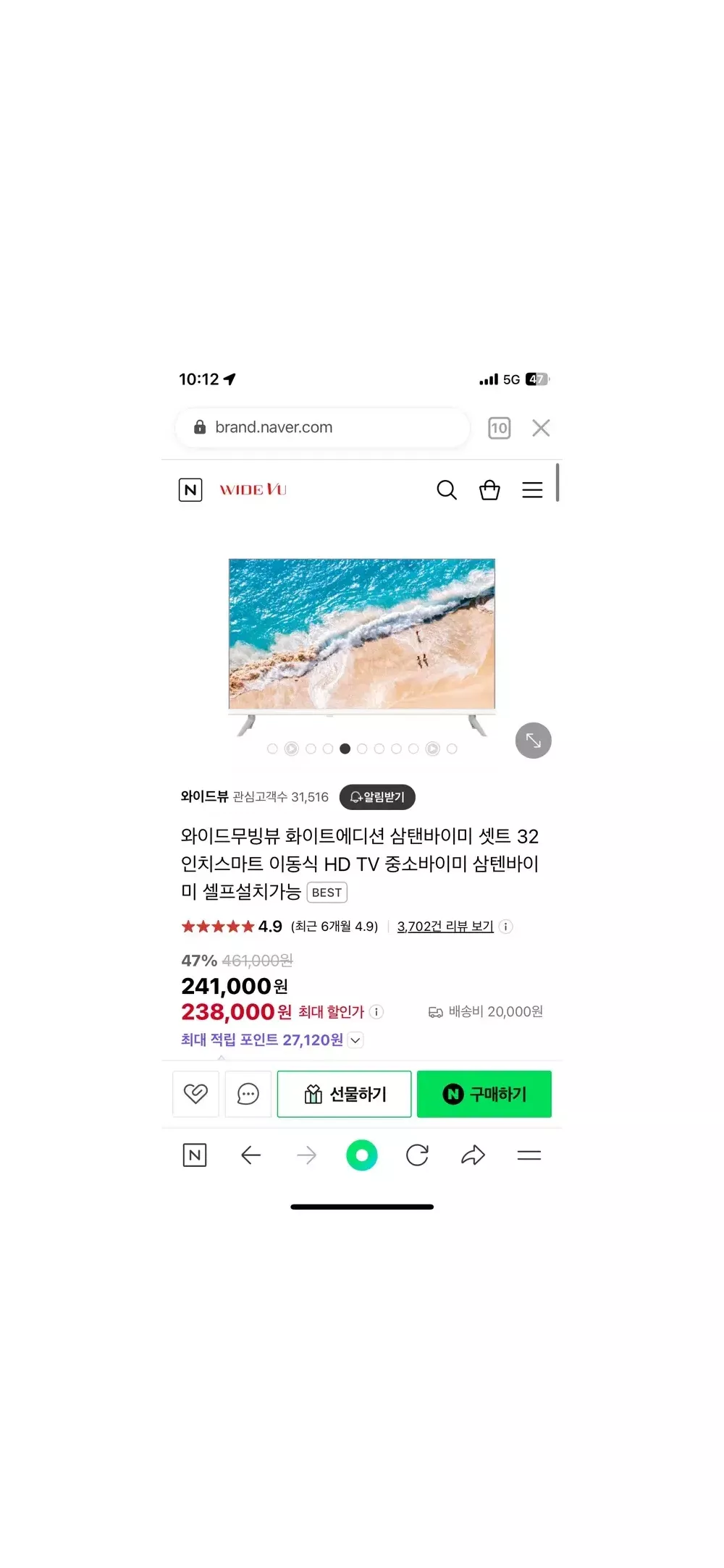 와이드뷰 32인치 삼탠바이미 구매