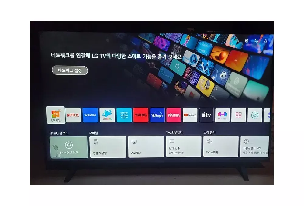 LG 55인치 UHD 4K 스마트 TV UP83 모델명은 55UP831C0NA 2022년 3월 제조 국내정품입니다. S급 상태이며, 스탠드형입니다. 사용 시간 976시간으로 매우 짧습니다. 매직리모컨 포함입니다. 넷플릭스, 유튜브, 왓챠, 티빙, 웨이브, 라프텔, 프라임비디오, 애플TV, 디즈니+ , 무선 미러링 등 가능한 스마트TV 입니다. 서울 강동구 성내동입니다. 가까운 지역은 배송해드립니다. LED TV/55인치(138cm)/LED/4K UHD/4K주사율: 60Hz/4K업스케일링/필름메이커모드/스마트: 넷플릭스, 유튜브, 미러링, 구글어시스턴트, LG채널/OS: 웹OS 6.0/사운드: 인공지능, 블루투스오디오/HDMI(전체): 3개/USB: 2개/지원: eARC/Wi-Fi/LAN/블루투스/옵티컬/에너지효율: 1등급/소비전력: 160W/2021년형/크기(가로x세로x깊이): 1235x715(772)x58(232)mm/스탠드너비: 951mm/ [화질음질] HDR10/HLG/스피커: 2.0채널/출력: 20W/ [게임특화] ALLM/HGIG/게임모드