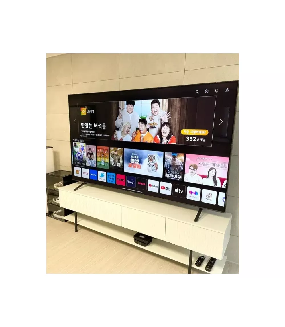 LG 86인치 UQ93 4K UHD 스마트 TV 모델명 86UQ931C0NA 2023년 4월 국내정품 모델입니다. 2025년 7월 까지 무상 패널 보증 적용됩니다. S급 사용감도 없습니다. 보호비닐도 그대로입니다. 스챈드형 벽걸이형 선택 가능합니다. 인공지능 음성인식 매직 리모컨 포함. 서울 강동구 성내동입니다. 가까운 지역은 배송해드립니다. LED TV/86인치(217cm)/LED/4K UHD/기본주사율: 120Hz/ [화질] 5세대 알파7/HDR10/HLG/ [게임] HDMI2.1/VRR/ALLM/HGIG/FreeSync/게임모드/ [스마트] 웹OS 22/넷플릭스/유튜브/미러링/룸투룸셰어(서브)/음성인식/LG채널/ [사운드] 스피커: 2.0채널/출력: 20W/공간인식/인공지능/WiSA스피커/ [부가] HDMI(전체): 4개/USB: 2개/에너지효율: 비대상/2022년형/크기(가로x세로x깊이): 1927x1104(1167)x60(362)mm