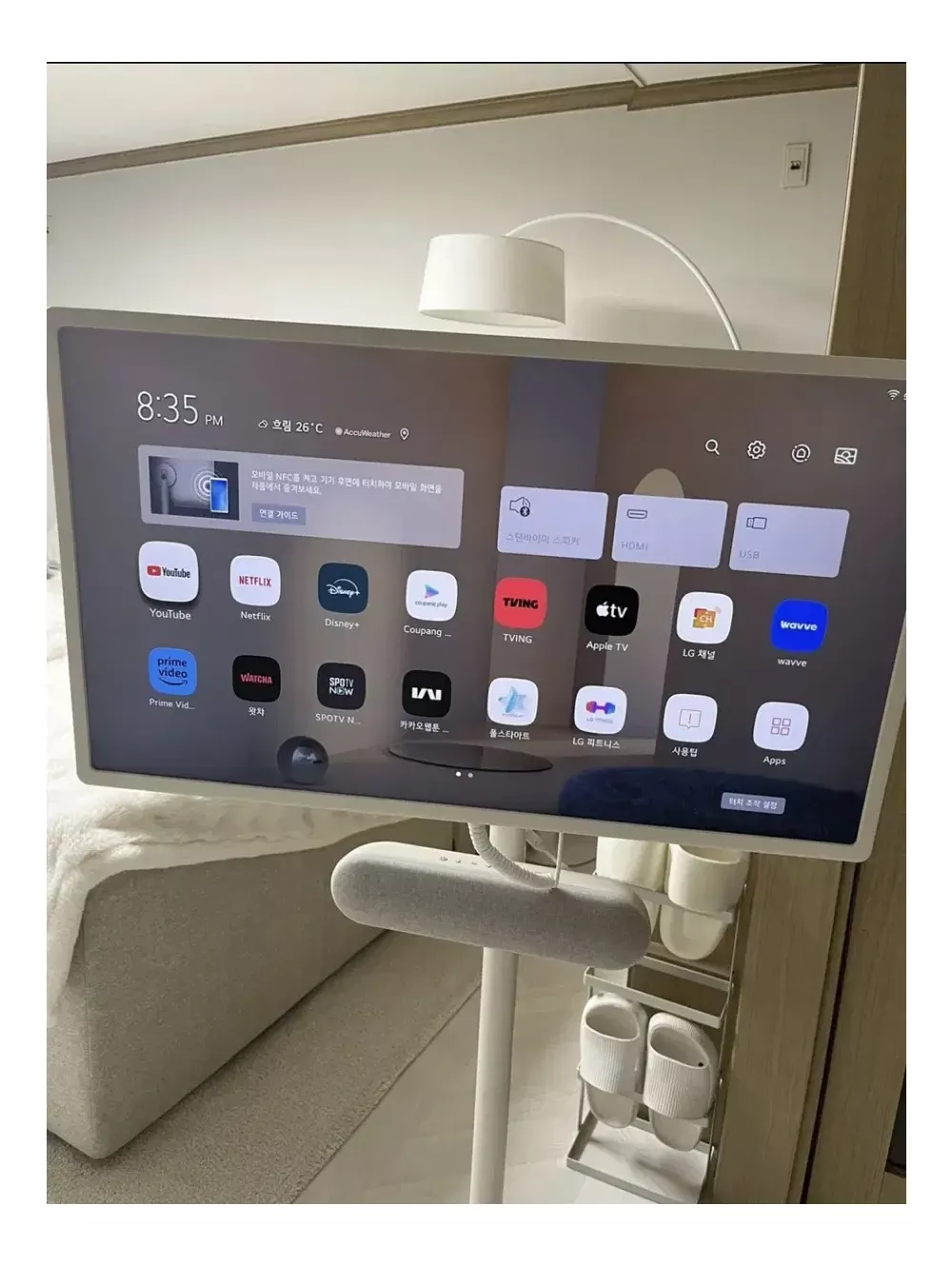 2024년 3월에 배송받고 이사문제로 하여 쓰는건 5월부터 썻어요 설치되어있는거라 직접 가지러 오셔야해요 경기도 안양이며 직접 가지러 오시면 기름값이랑 해서 네고 가능합니다 세워두고 사용은 많이 안했어요 작동하는데 문제 아예 없고 충전선은 항상 연결해서 사용했어용 5번째 사진 보시면 스피커에 뭐 묻어있는데 물티슈나 클리너도 지우시면 충분히 지워질 것 같아요 스탠바이미랑 스피커 둘다 인터넷 최저가 검색해보고 가격 감안해서 내놓습니당 박스를 제외한 모든 구성품 다 있어요 *참고로 스피커는 설치 후 따로 한번도 떼낸적 없어요!