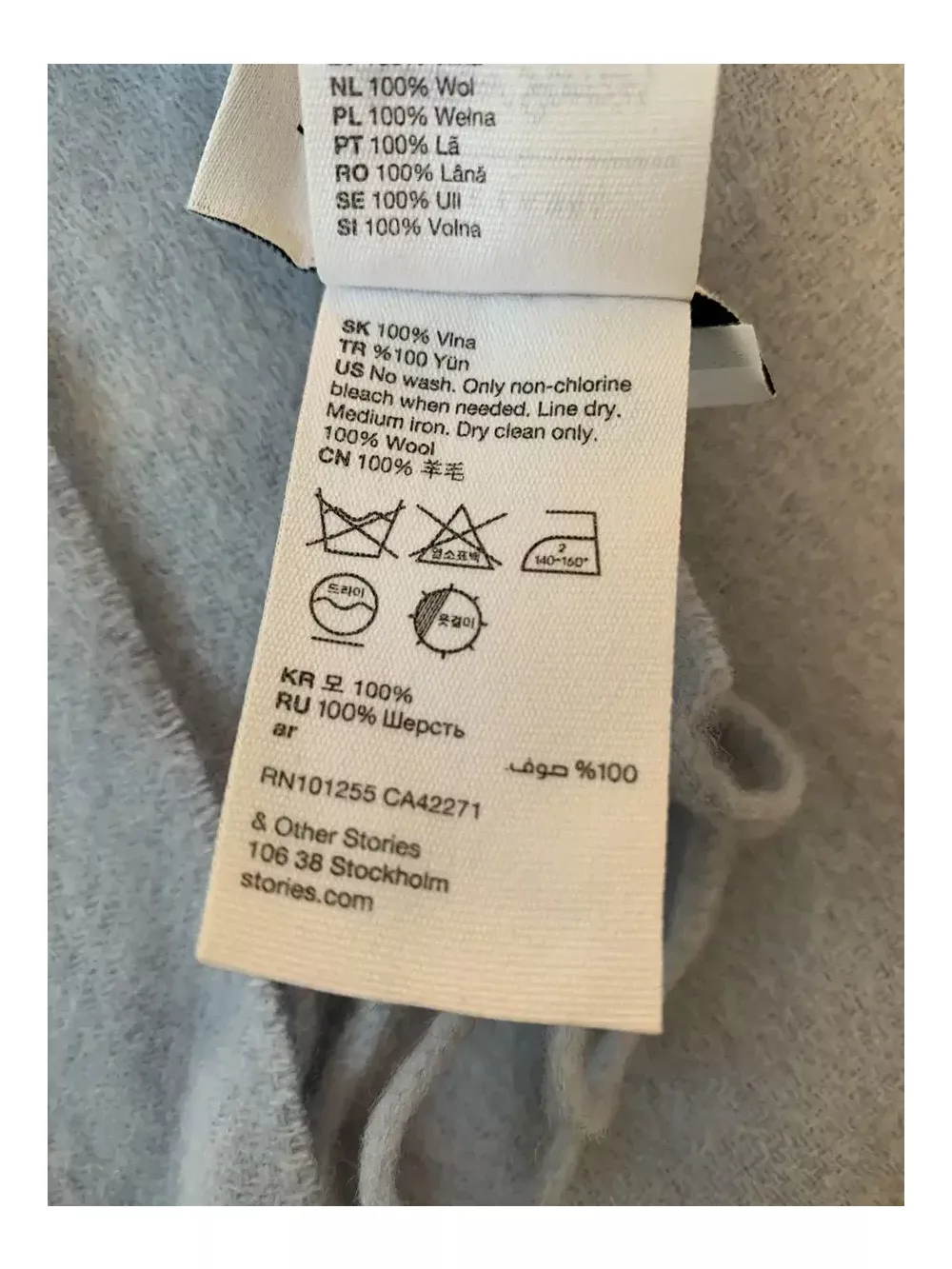 앤아더스토리즈 울 프린지 머플러 라이트블루 입니다. 182 48 입니다 :)