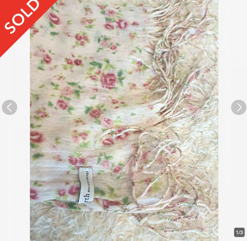 earth music&ecology 브랜드의 잔꽃 스카프, 머플러입니다! 일본 구매 사이트에서 직구했고 너무 여성스럽고 빈티지스러워서 예뻐요! 모리걸, 스즈코 코디에서 휘뚤마뚤이고 약간 y2k느낌 좋아하시는 분들께도 추천합니당 문의는 번톡주세요:)